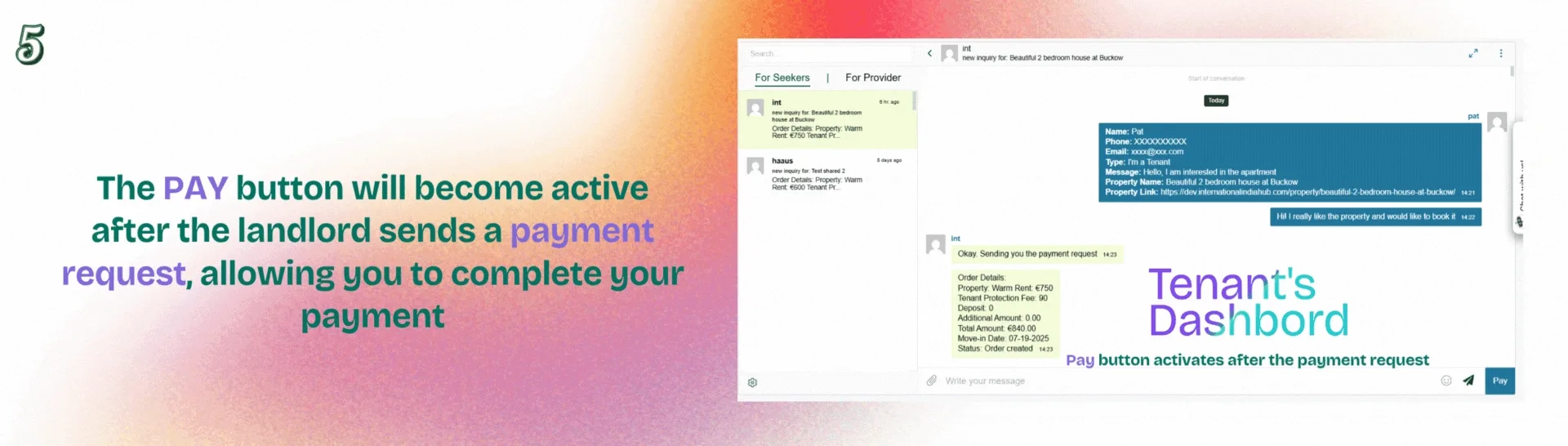 For making the booking, the landlord will send a secure payment request via private chat using which you can make the payment. Your payment is held until 2 days after move-in, protecting you from scams. Double-check the move-in date carefully!