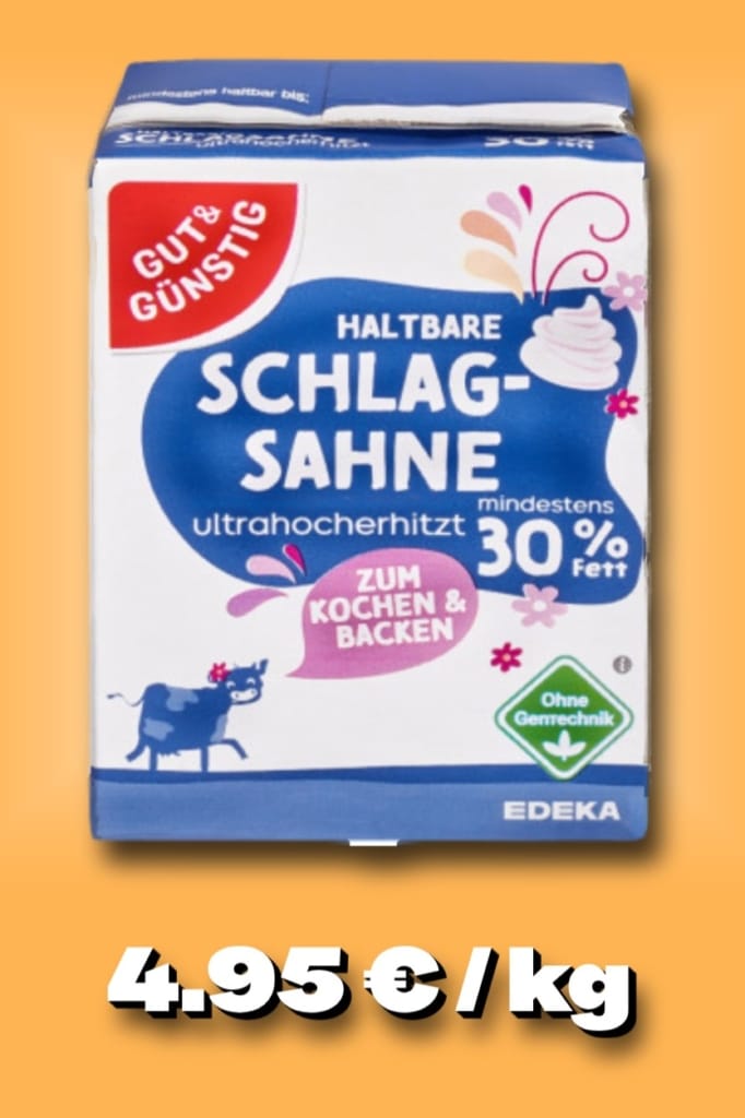 - Buy: Schlagsahne (Whipping Cream, 30% fat).