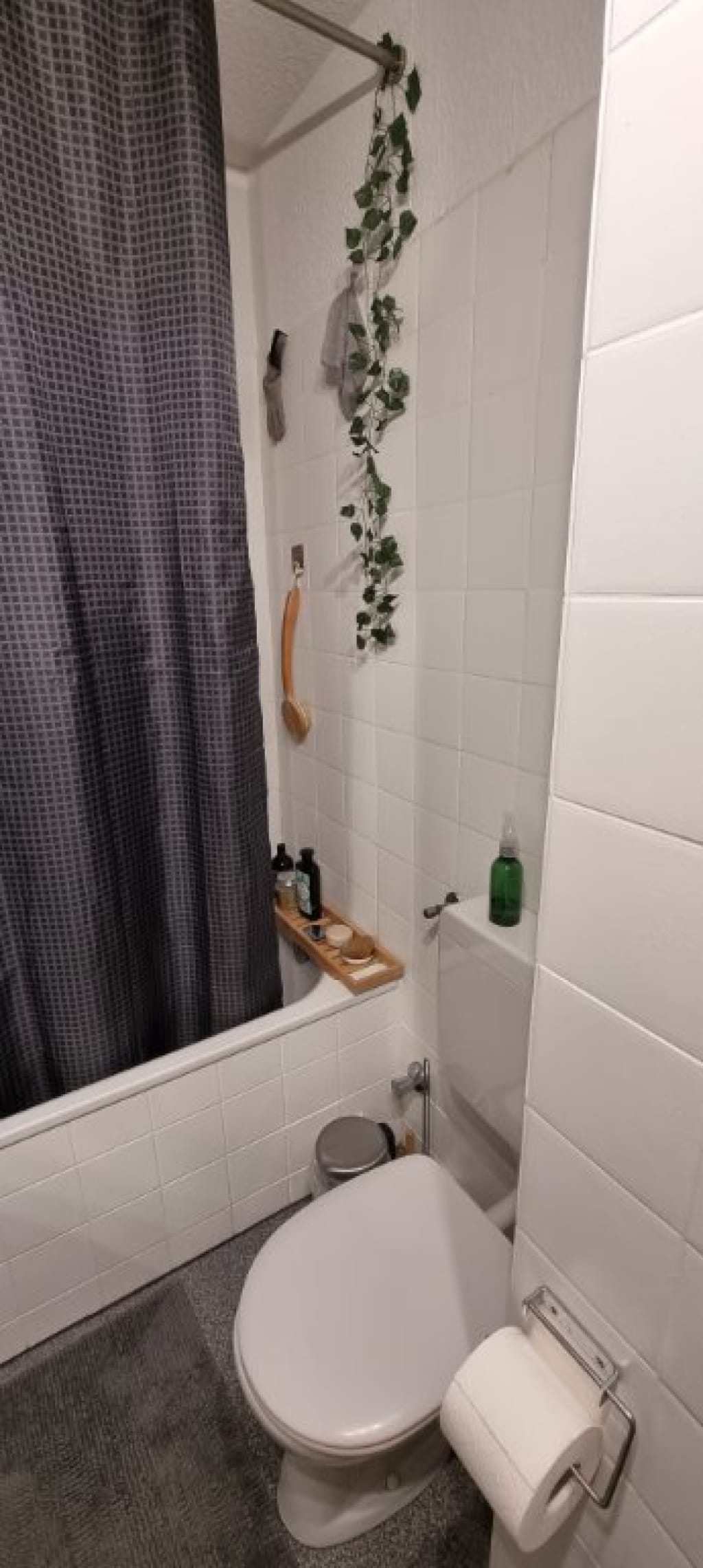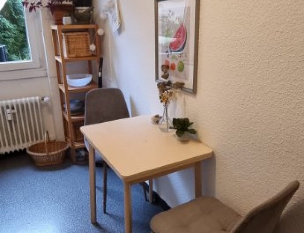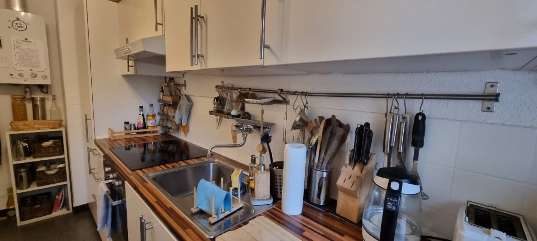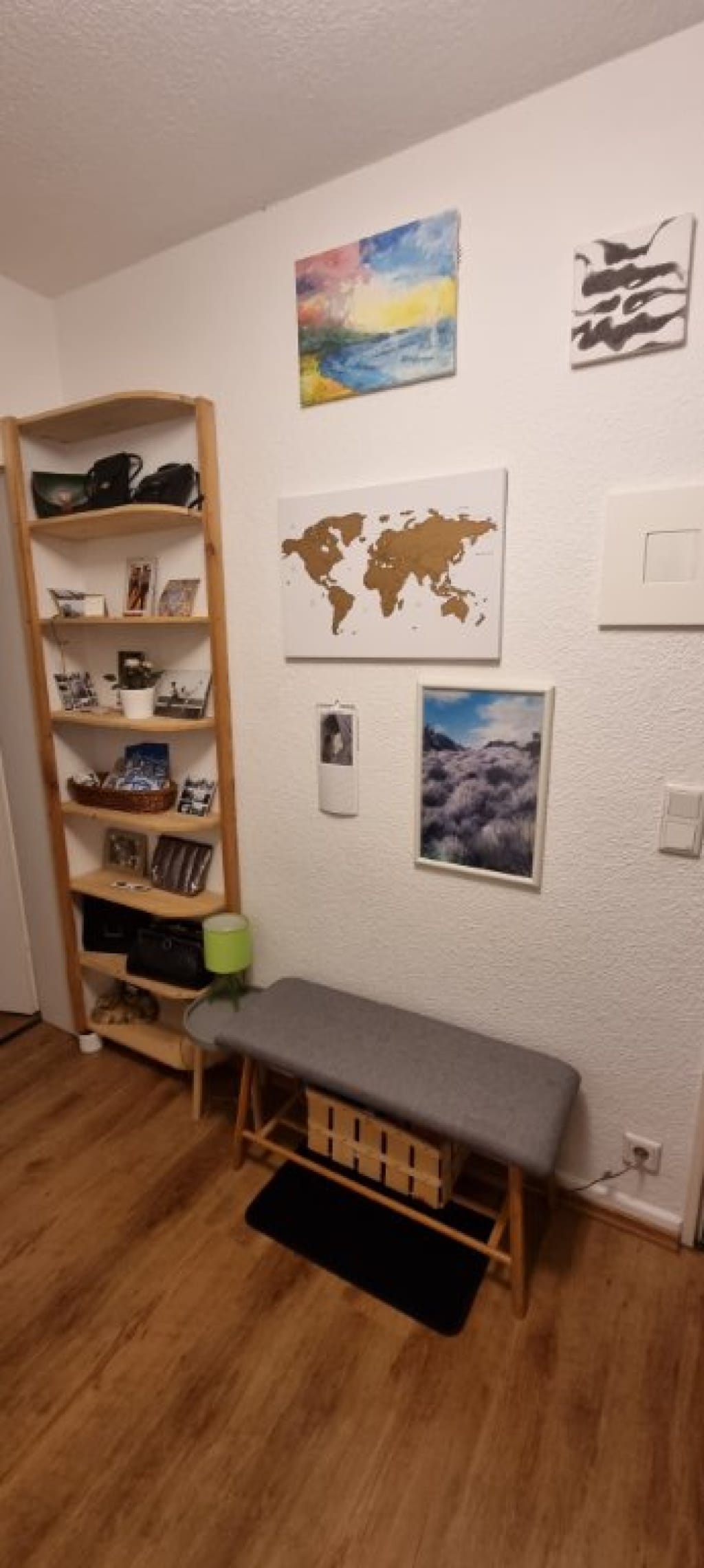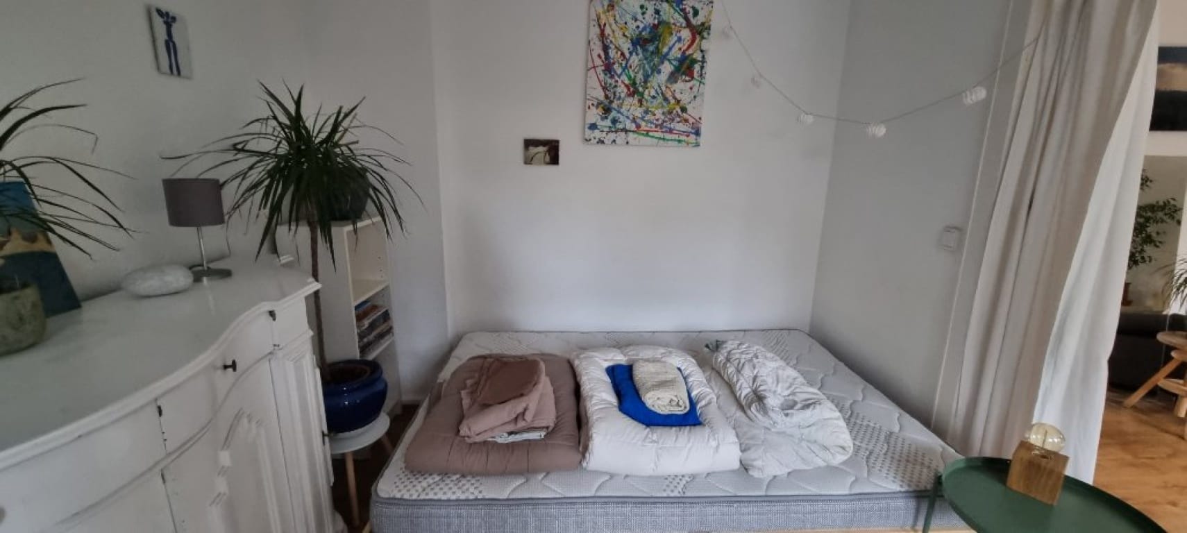 A desk for work is provided, as well as a large, comfortable couch for relaxing, a 135×190 cm bed, a wardrobe, and a clothes rack.There is one other roommate, so we would be a maximum of three people in the shared apartment.