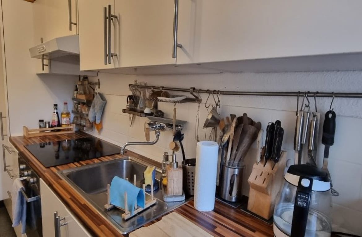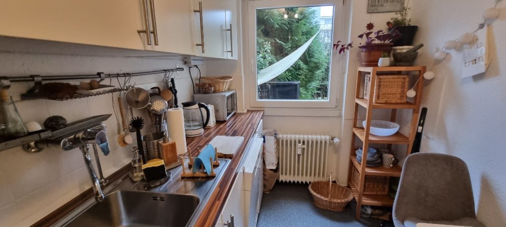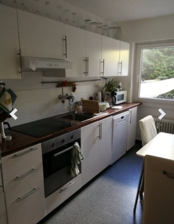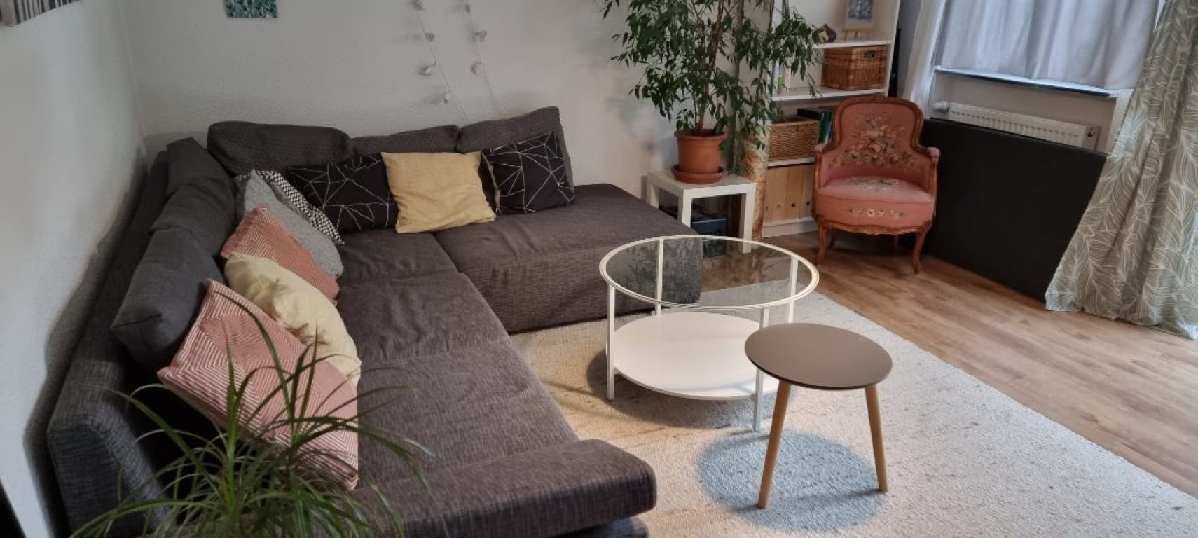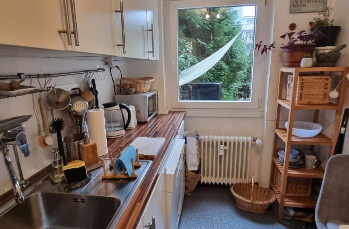 A desk for work is provided, as well as a large, comfortable couch for relaxing, a 135×190 cm bed, a wardrobe, and a clothes rack.There is one other roommate, so we would be a maximum of three people in the shared apartment.