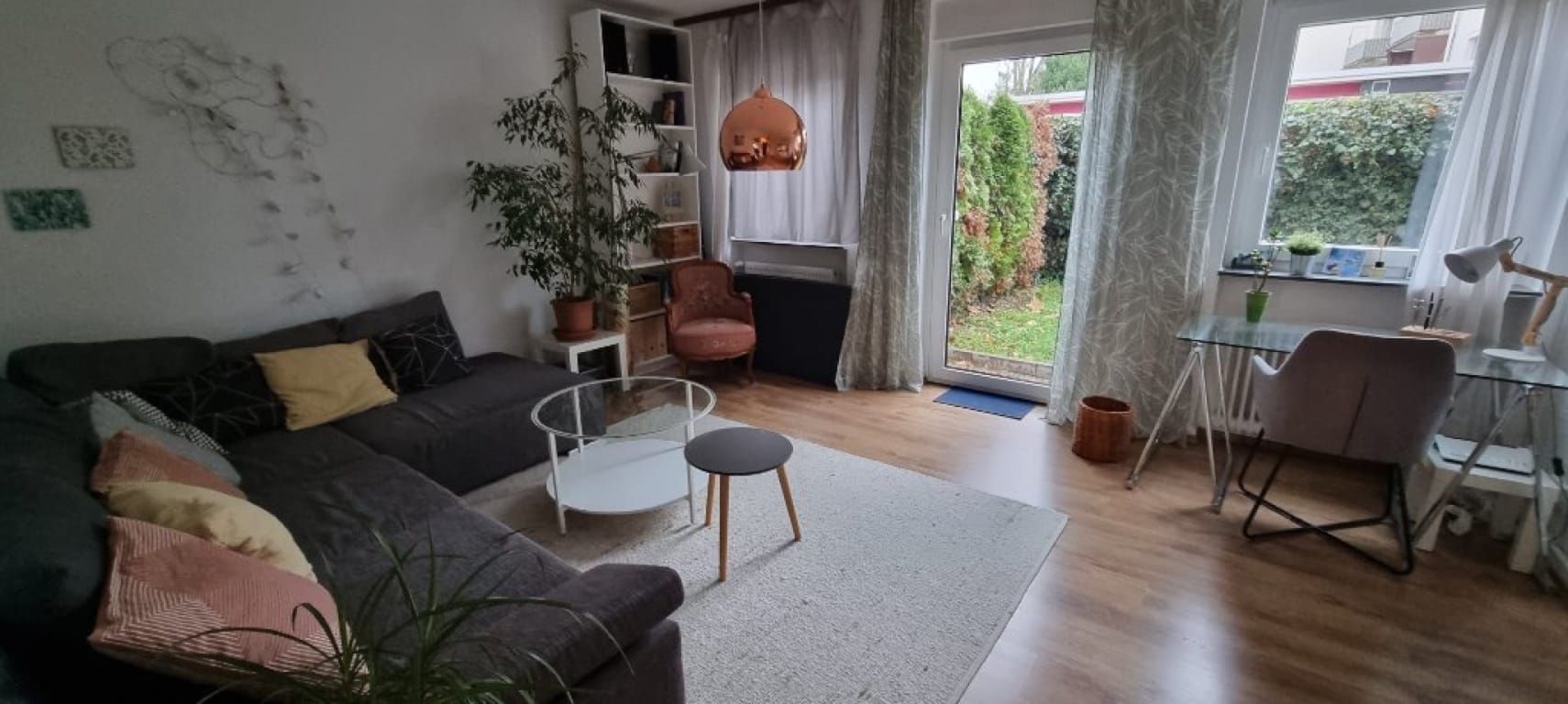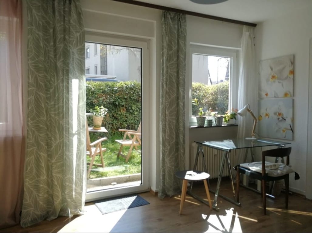 Beautiful, bright, and spacious two adjoining rooms, furnished as a living room and bedroom, totaling 30 sq m, with a view and direct access from the living room to the private small front garden.